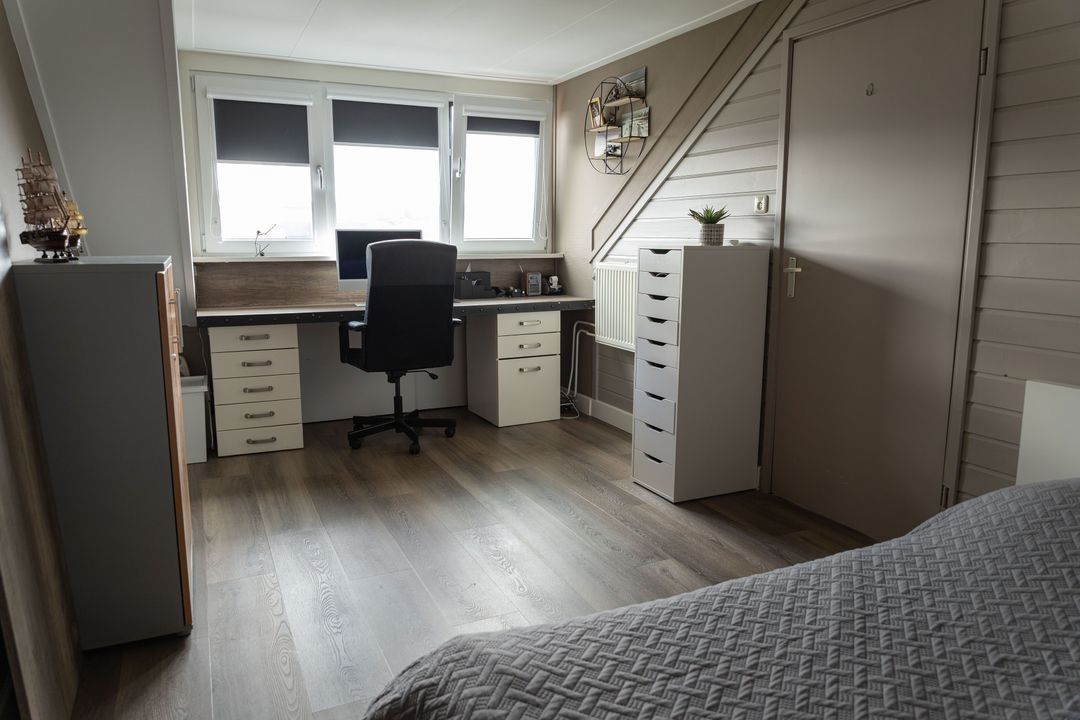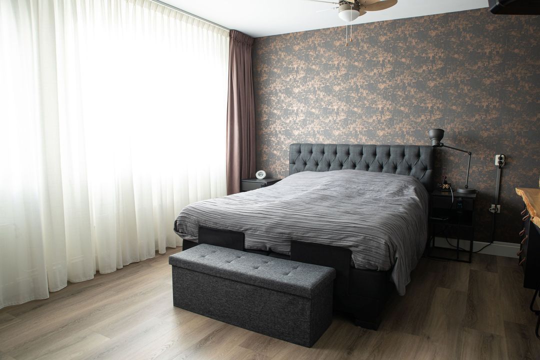 Via de gerenoveerde trapopgang wordt de verdieping bereikt. Het raam in de zijgevel zorgt voor veel lichtinval in de trapopgang en op de overloop. De overloop biedt toegang tot twee ruime slaapkamers en de badkamer. De slaapkamer aan de voorzijde is woningbreed en heeft een oppervlakte van maar liefst 20 m². Hier is ruim plaats voor een grote kledingkast. Een airco zorgt hier voor extra comfort om te koelen, maar ook te verwarmen. Deze slaapkamer is eventueel te splitsen in twee slaapkamers, indien gewenst. Aan de achterzijde bevindt zich een ruime slaapkamer van ca. 12 m². Van hieruit is er fraai zicht op de achtertuin. De badkamer beschikt over een wastafelmeubel met laden, een tweede wandcloset en inloopdouche met sunshower.