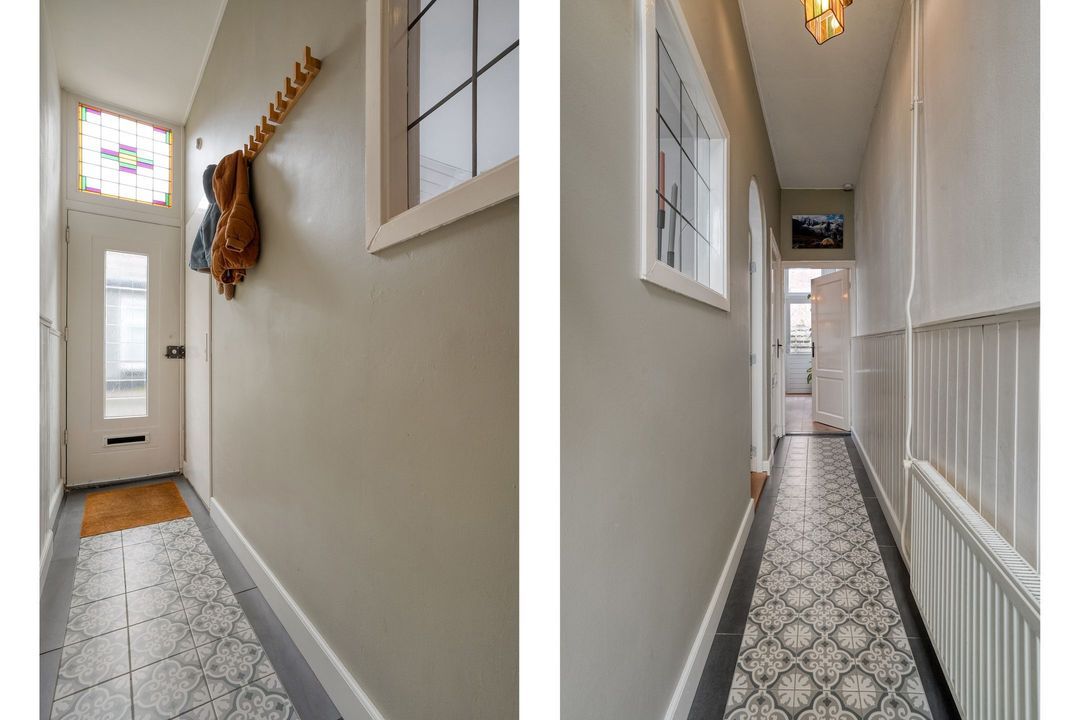 Parkeer je auto voor de deur en stap binnen voor een bezoekje. Heb je geen parkeervergunning, dan even de parkeerapp gebruiken. Staand vóór de prachtige voordeur vang je door het glas-in-loodraam al een glimp op van de leuke vloertegels in de hal. Het hoge plafond zorgt voor een prettige ruime binnenkomst. Loop je meteen rechtdoor, dan kom je in de woonkeuken.