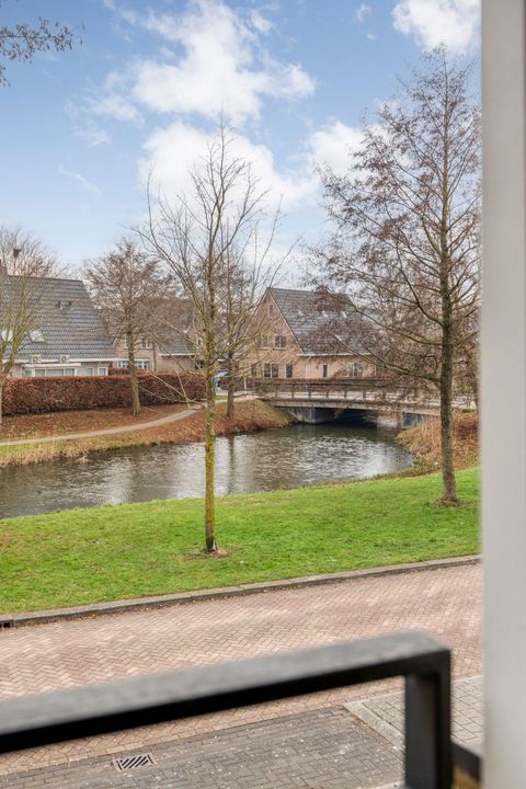De woning biedt aan de voorzijde fraai zicht op een brede groenstrook met water. Het kleine treinstation van de wijk bevindt zich op korte afstand van de woning. Een bushalte naar het station is om de hoek te vinden. De Milligerplas, het winkelcentrum en diverse scholten zijn ook vlot te bereiken van hieruit. Het is een rustige straat in een levendige kinderrijke jonge woonwijk.